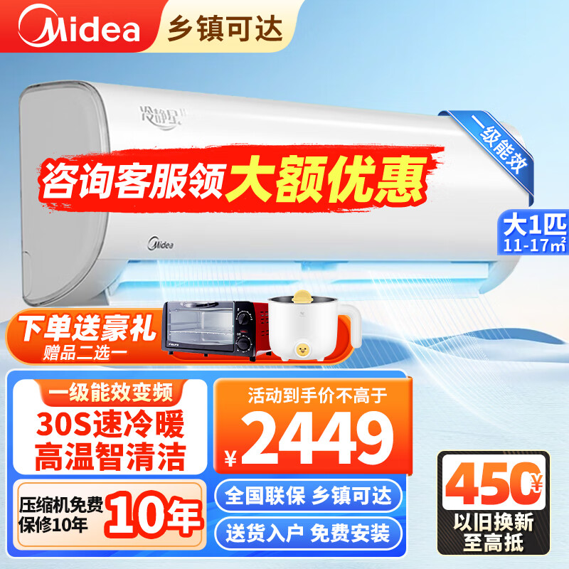 美的空调大1匹 冷静星二代家用壁挂式空调挂机 新一级变频 智能冷暖 KFR-26GW/BDN8Y-PH200(1)A 智选价格:2449.00元!