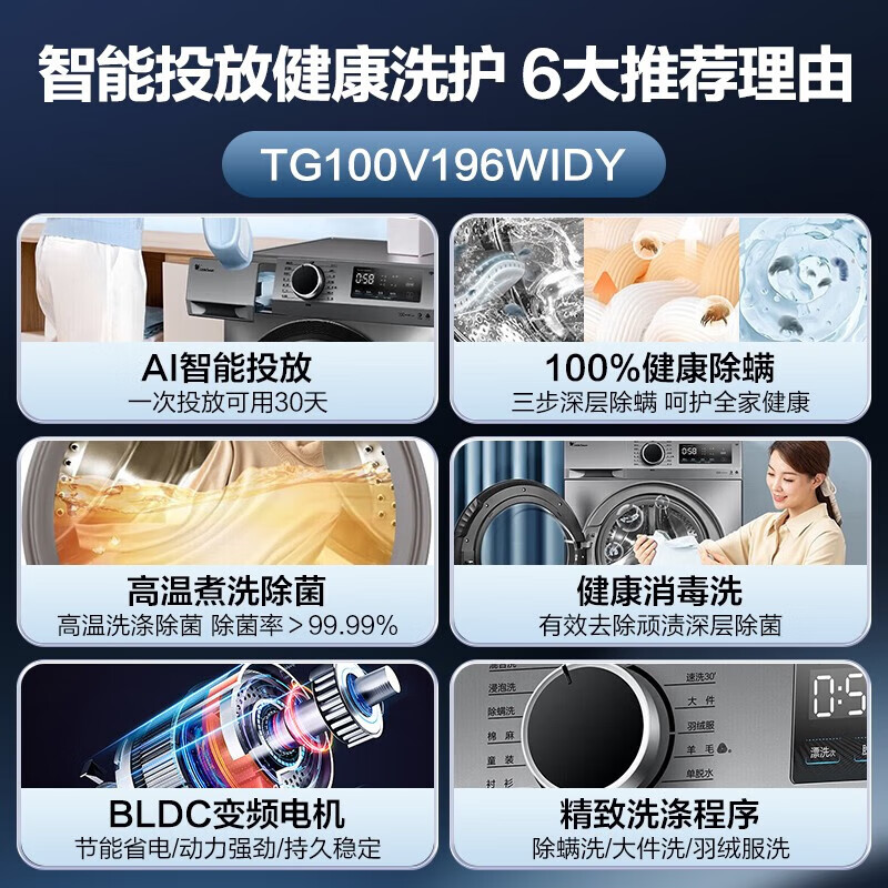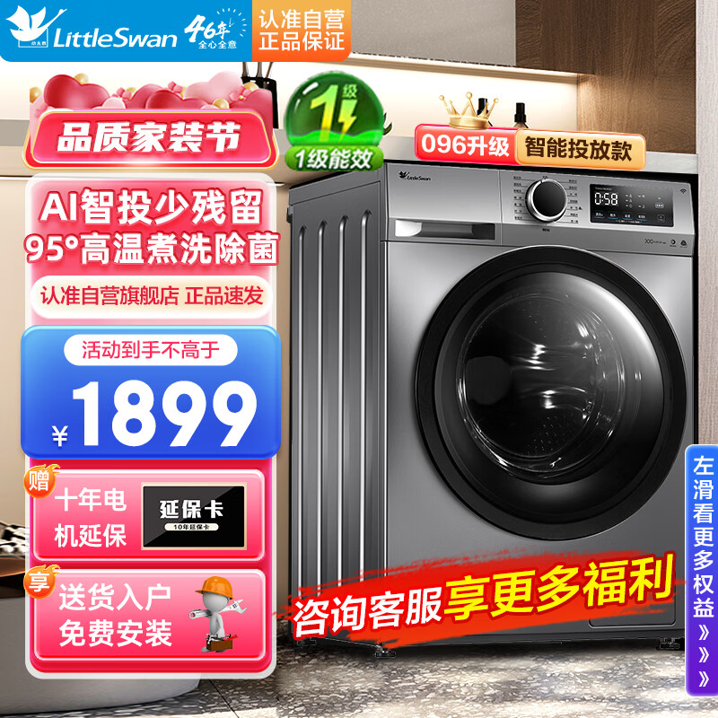 小天鹅(LittleSwan)滚筒洗衣机全自动 10公斤大容量 智能投放 快洗速洗除菌净螨变频电机 冷水洗超薄机身 096升级款价格:1719.00元!