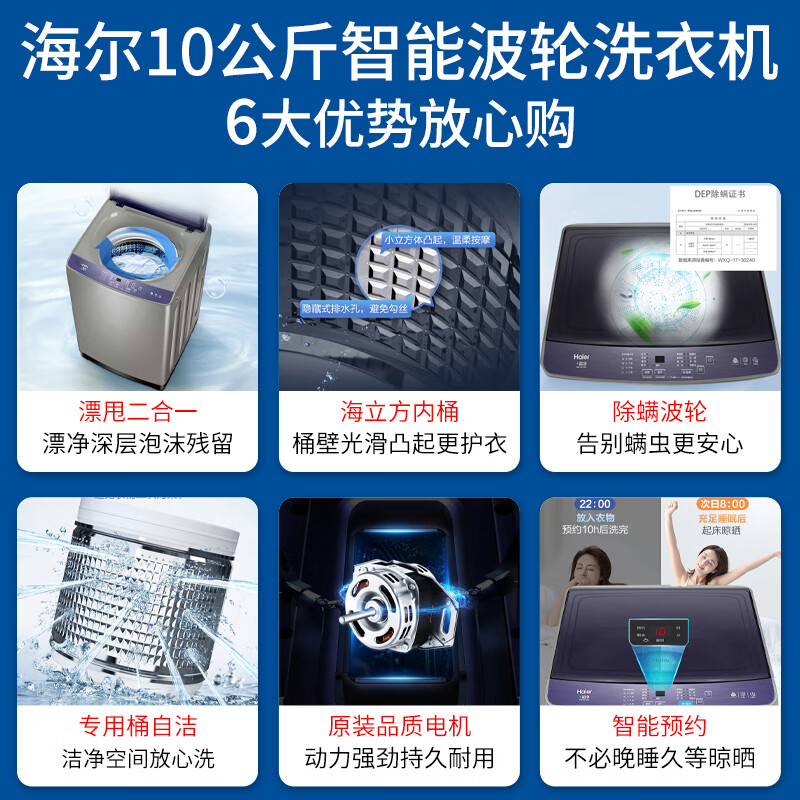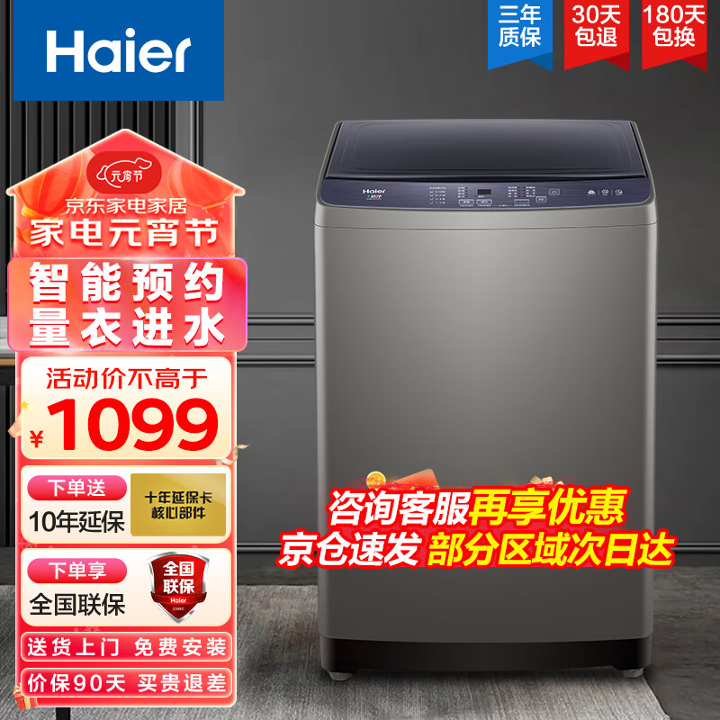 海尔(Haier)洗衣机10公斤全自动波轮家用节能出租大容量智能自编程羊毛除螨洗量衣进水XQB100-Z206[家电]价格:1199.00元!
