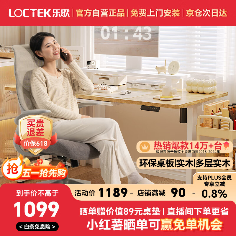乐歌电动升降电脑桌电竞升降书桌办公学习桌子E2原木色1.2m价格:1189.00元!