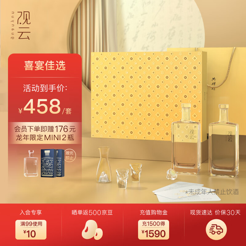 观云共婵娟 浓香型白酒 56度 500ml*2瓶 礼盒装 内含酒具 送礼宴请价格:458.00元!