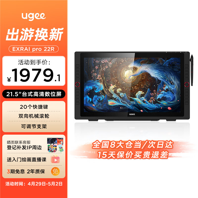 友基(UGEE)数位屏手绘屏绘画屏手写屏数位板手绘板液晶手写板画板连电脑写字板EXRAIPro 22R价格:2199.00元!
