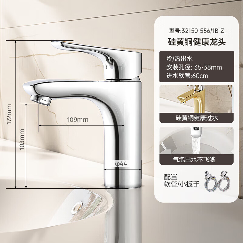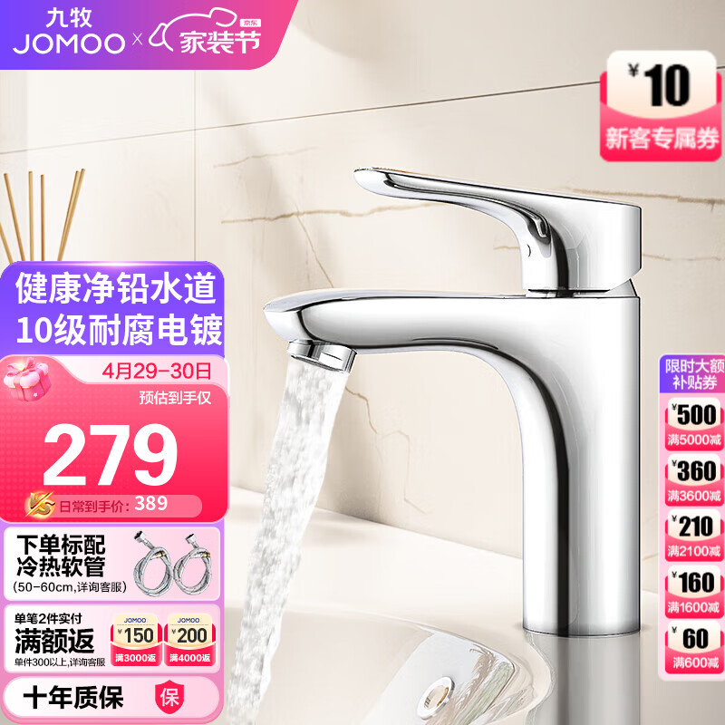 九牧(JOMOO)面盆水龙头硅黄铜卫生间洗手洗脸盆冷热健康卫浴32150-556/1B-Z价格:329.00元!