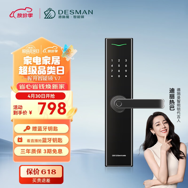 德施曼(DESMAN)指纹锁智能门锁 电子锁家用防盗门锁密码锁APP智联C级锁芯 V7价格:797.90元!