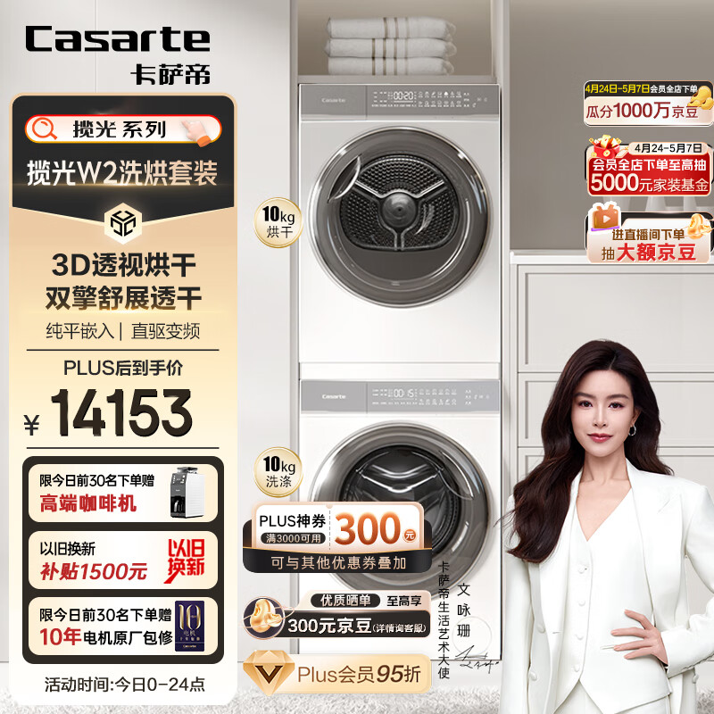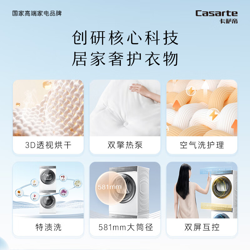 卡萨帝(Casarte)揽光W2洗烘套装 直驱滚筒洗衣机全自动+双擎热泵烘干机 3D透视烘干 平嵌光年10FW2EU1+10W2ELU1价格:14898.00元!