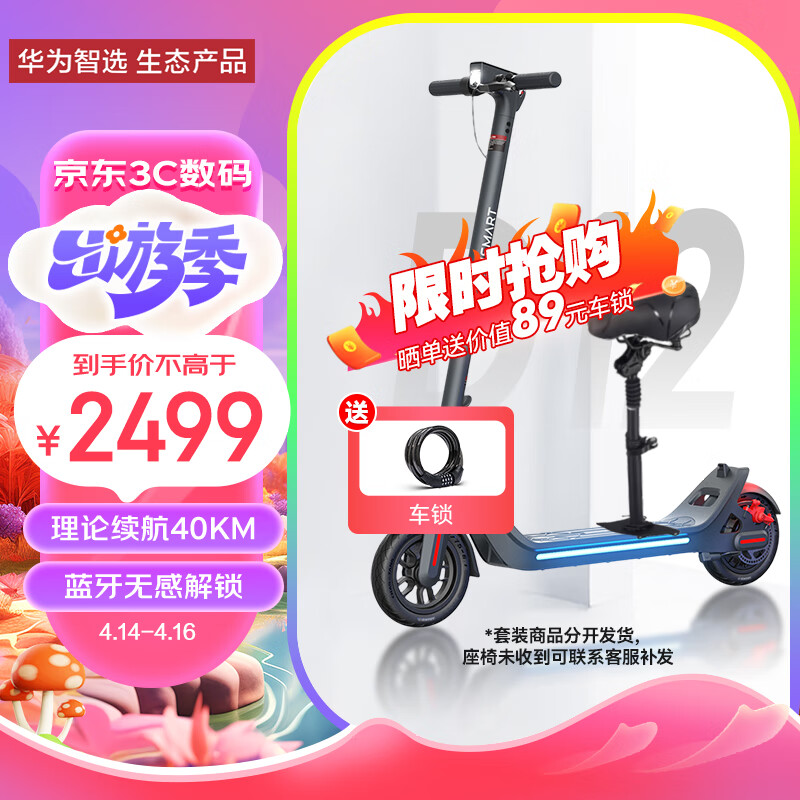 华为智选 乐骑智能电动滑板车成人学生体感车便携可折叠代驾40km长续航 真空胎 定速巡航一键解锁 雅士黑价格:2499.00元!