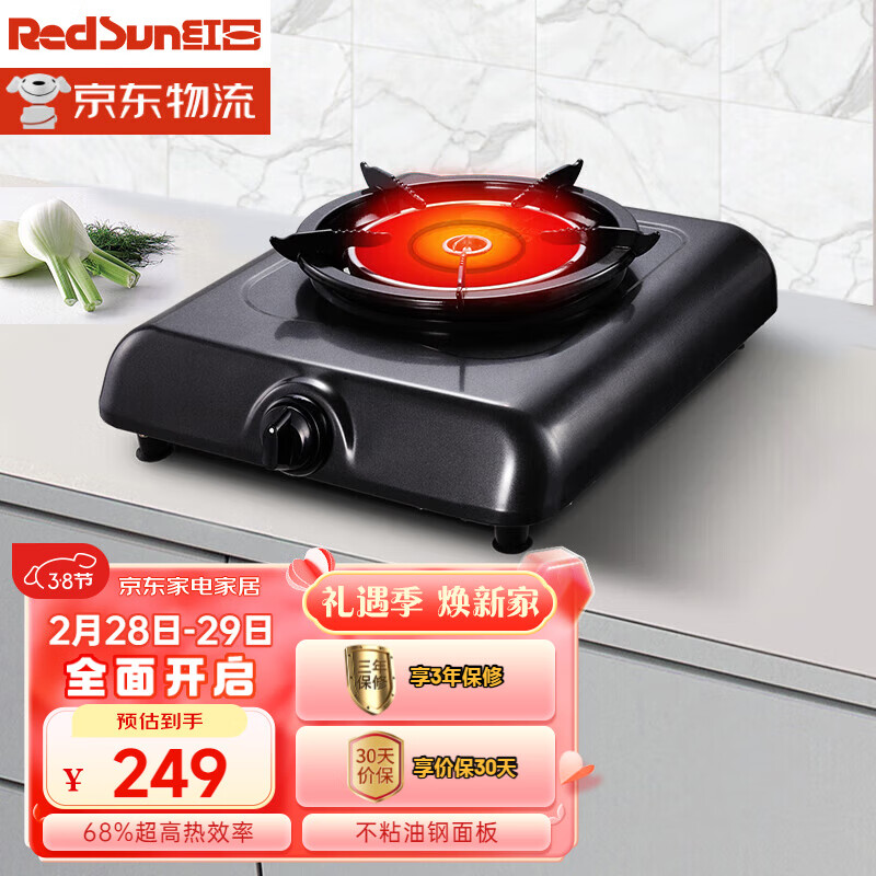 红日(RedSun)红外线灶台式燃气灶单灶猛火无烟无焰不黑锅底童锁保护蜂鸣提醒? 68%热效率 JZT-108D 天然气价格:249.00元!