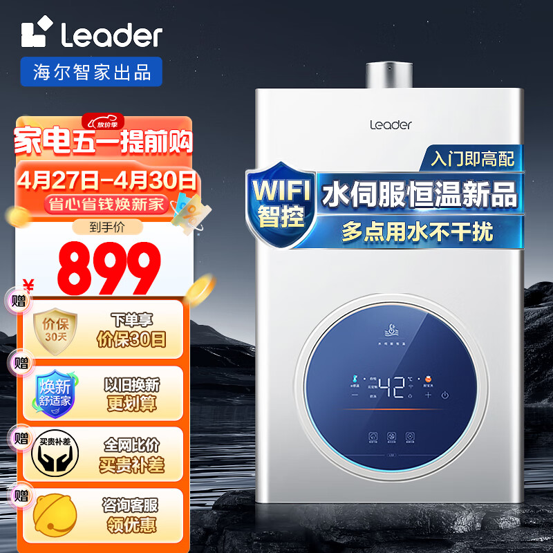 海尔智家出品 Leader燃气热水器天然气 13升水伺服恒温AI家用智能节能 JSQ25-13LS3U1价格:899.00元!