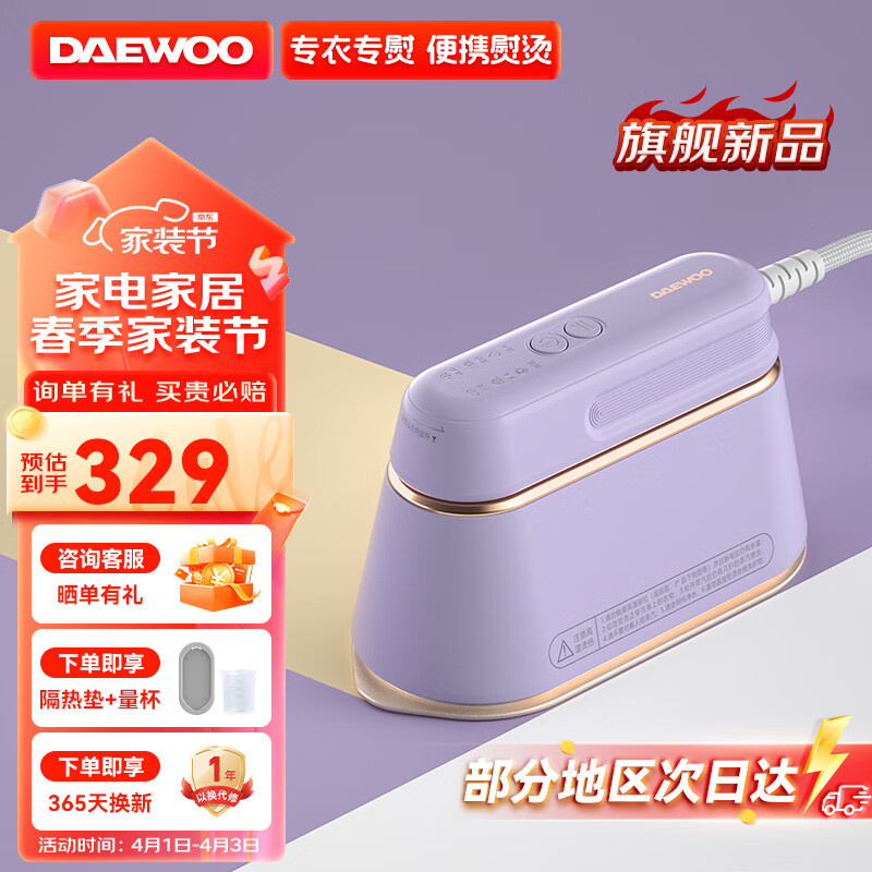 大宇(DAEWOO)挂烫机家用蒸汽电熨斗熨烫机 手持挂烫机熨衣机旅游出差便携式小型除菌除螨熨斗HI-029PRO灰藕紫价格:359.00元!