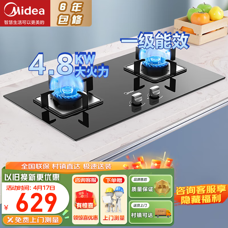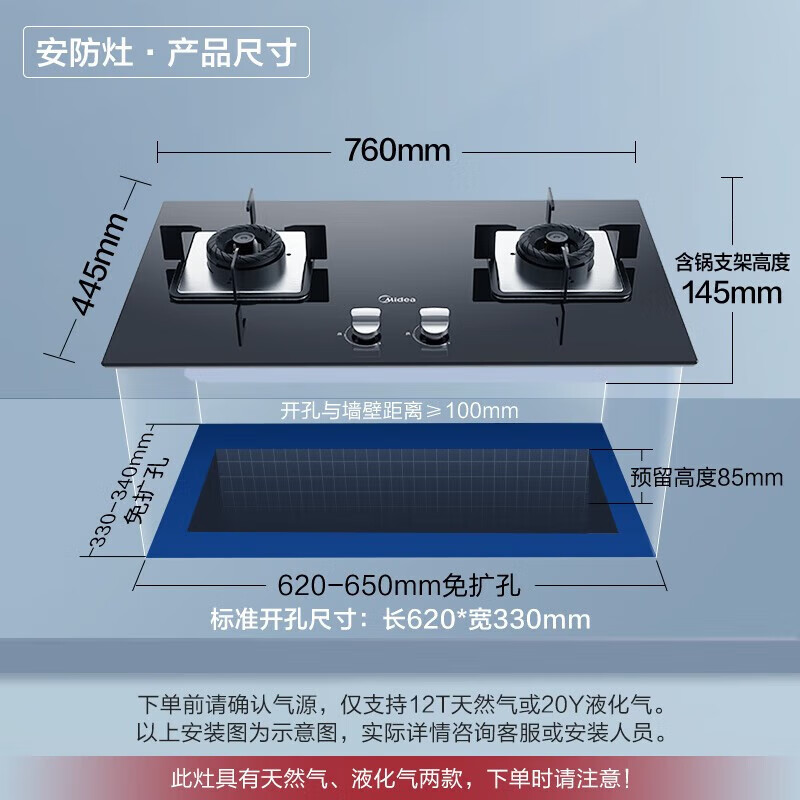 美的(Midea)燃气灶家用双灶天然气灶 大火力灶具液化气灶煤气灶猛火灶双灶台式嵌入式双眼灶 以旧换新 【台嵌两用】4.8KW猛火217B 天然气价格:629.00元!
