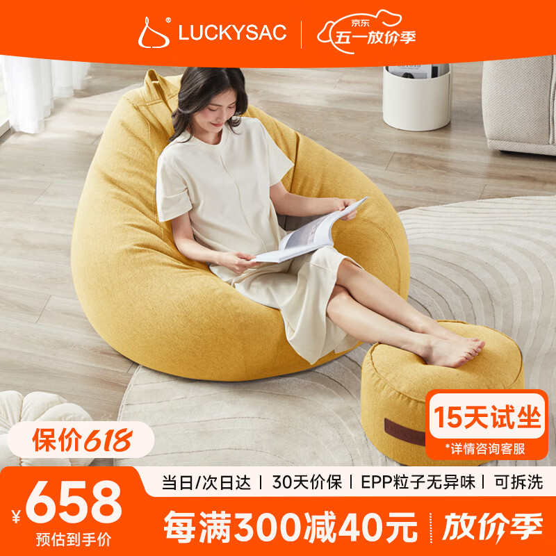 LUCKYSAC懒人沙发豆袋EPP 单人布艺客厅卧室阳台小沙发 尊享款一套玉米黄价格:738.00元!