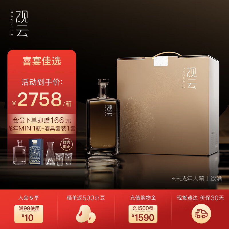 观云赤水 酱香型白酒 53度 500ml*6瓶 整箱装 含礼袋*3 自饮送礼价格:2758.00元!