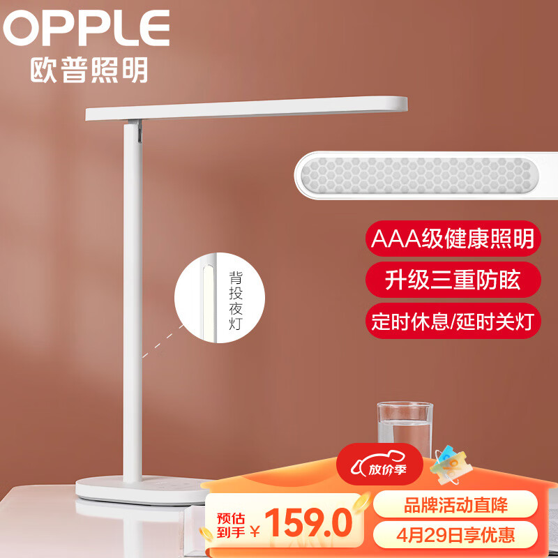 欧普(OPPLE)AAA级台灯学习护眼近视防控儿童LED触控调光卧室宿舍书桌读写台灯价格:159.00元!