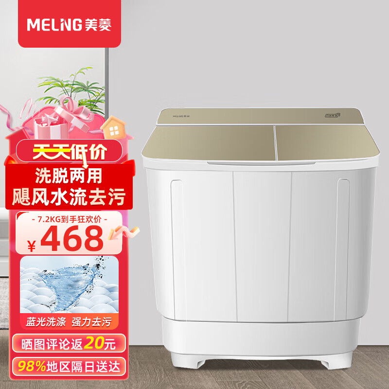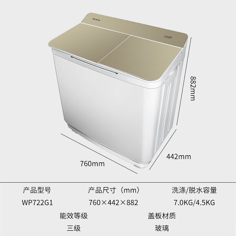美菱(MELNG) 7.0KG 半自动洗衣机双缸家用宿舍租房大容量双桶洗脱分离强力去污 WP722G1 流光金价格:528.00元!