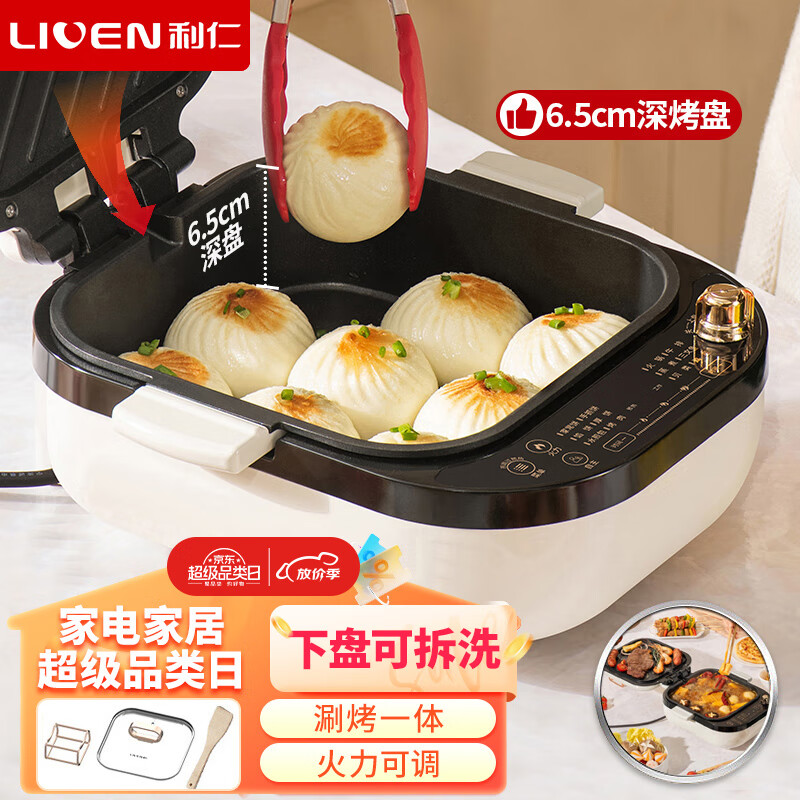 利仁(Liven)电饼铛家用65mm加深电饼档下盘可拆涮烤一体锅多功能电热锅电火锅电炒锅电饼锅大尺寸LR-D2316价格:248.00元!