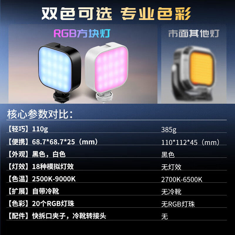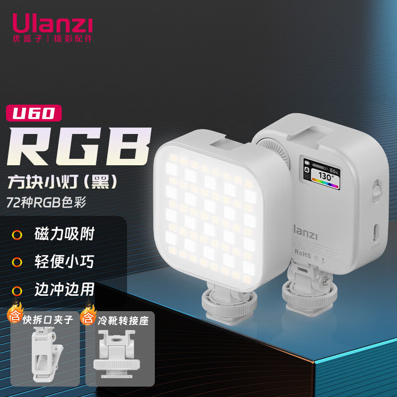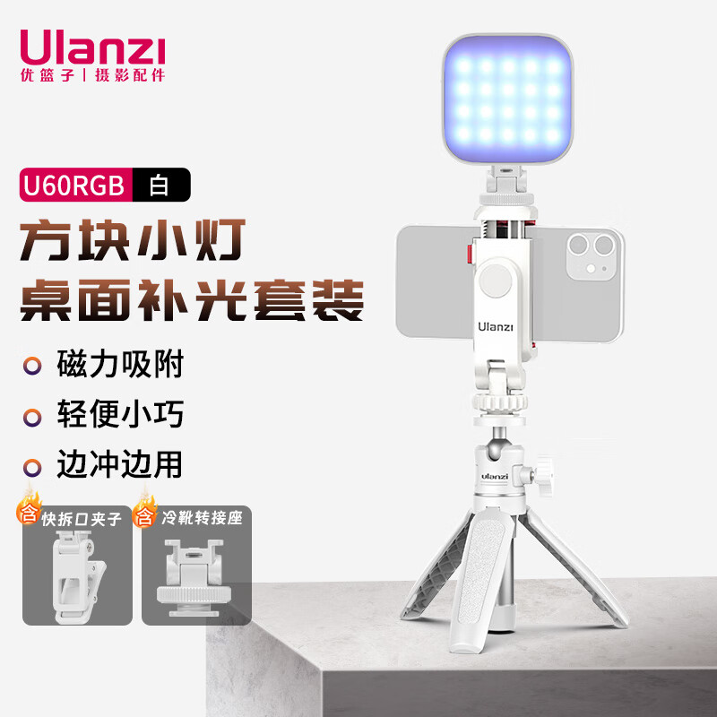 ulanzi优篮子U60 RGB桌面直播套装(白)磁吸全彩补光灯便携LED口袋双色温手持摄影灯相机手机直播灯价格:196.00元!