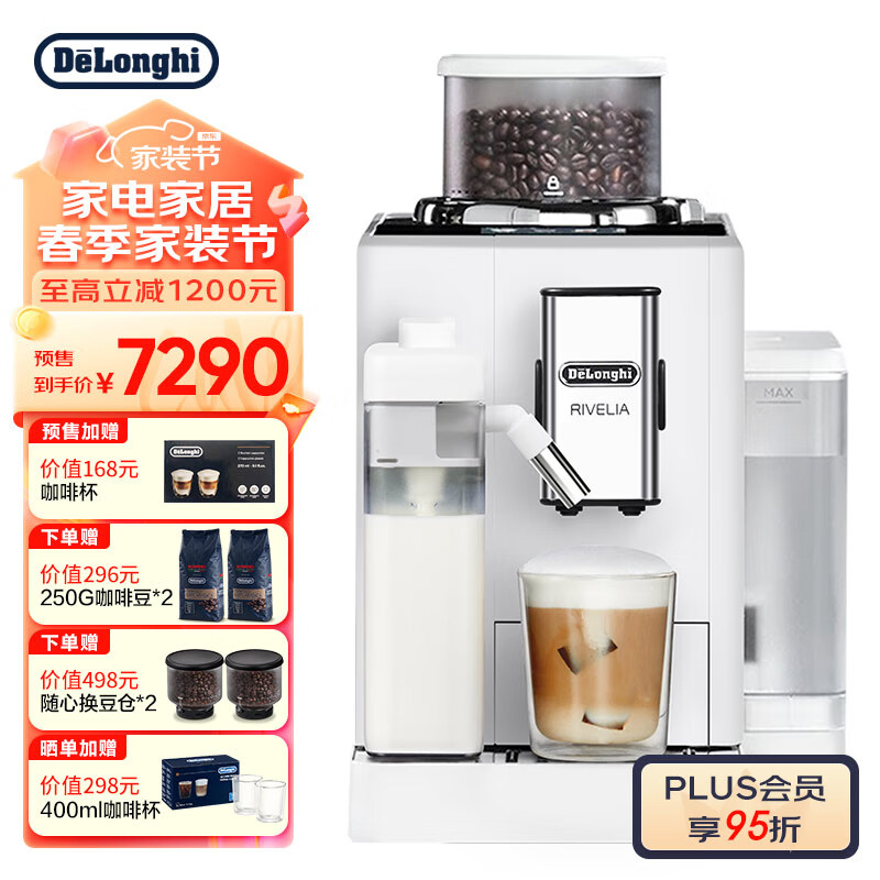 德龙(Delonghi)咖啡机 意式全自动咖啡机 可转换豆仓 家用 全彩触摸屏 欧洲进口 R5 W 白月光价格:7290.00元!