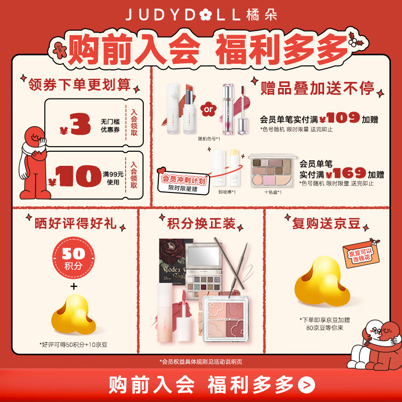 橘朵(Judydoll)心动眼唇彩妆礼盒 玩趣七色眼影玫瑰色小奶泥唇泥 情人节礼物价格:199.00元!