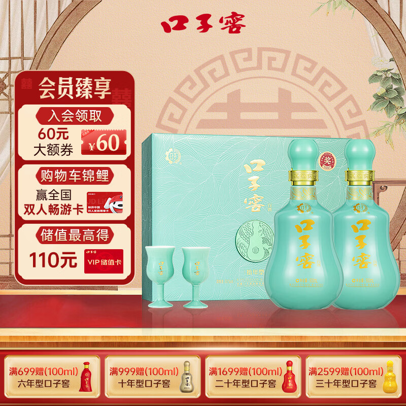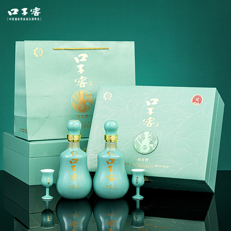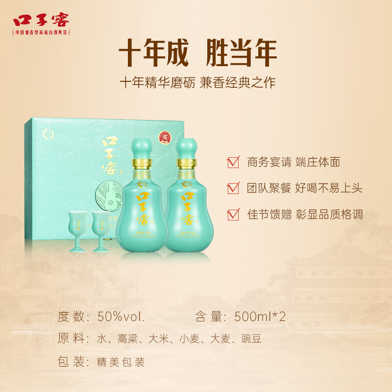 口子窖 十年型 兼香型白酒 50度 500ml*2瓶礼盒装 送礼宴请价格:671.00元!