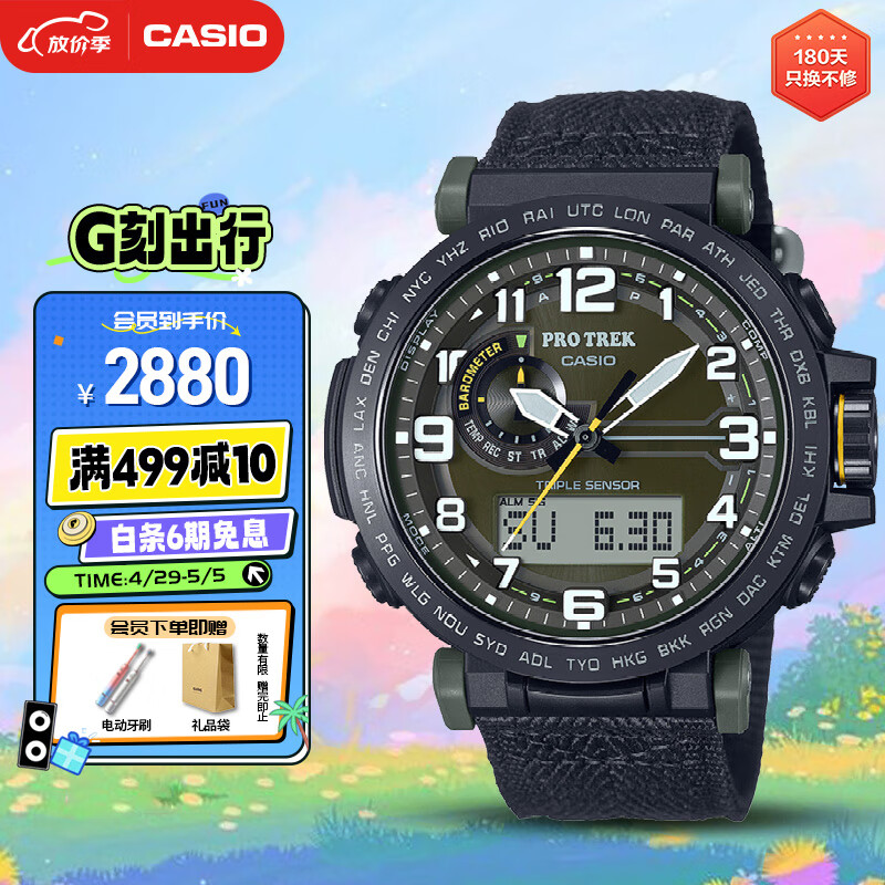卡西欧(CASIO)手表男士PROTREK光动能运动电子日韩表520送男友礼物PRG-601YB-3价格:2890.00元!
