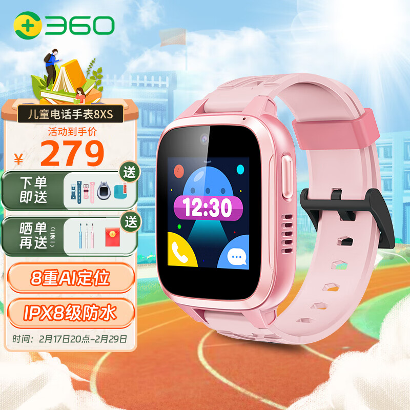 360 儿童电话手表8XS智能4G通GPS定位防水视频通话男女孩8xs手表 8XS粉色【吊坠+表带+贴膜】价格:299.00元!