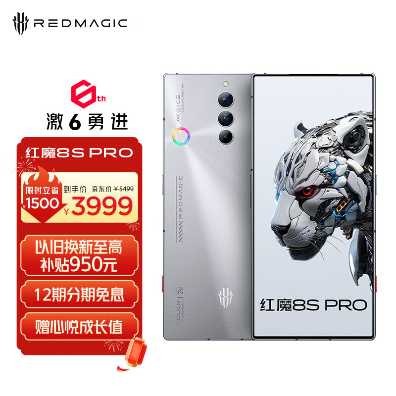努比亚(nubia)红魔8S Pro屏下游戏手机 12GB+512GB冰封银翼 第二代骁龙8 6000mAh电池 80W快充 5G手机价格:3999.00元!