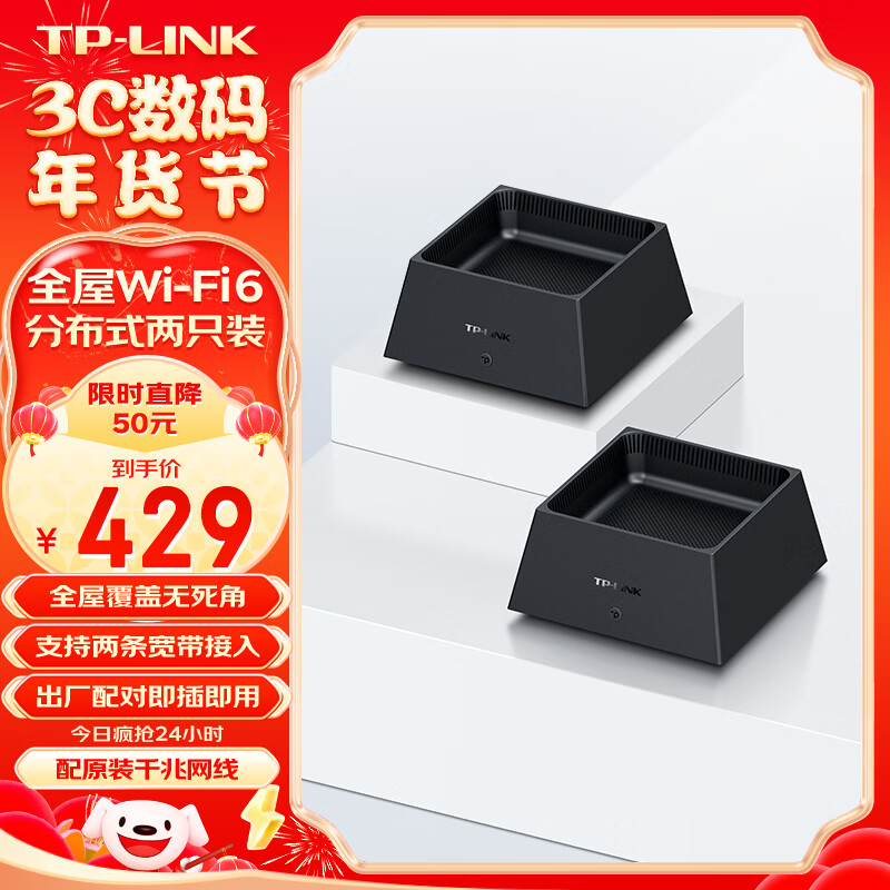 TP-link 全屋WiFi6 子母路由器 AX3000分布式两只装K20 千兆无线双频 别墅大户型易展无缝漫游 即插即用价格:479.00元!