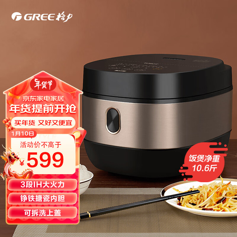大松(TOSOT)格力电饭煲电饭锅IH柴火饭 5L大容量4-5-8人 家用多功能蒸煮 智能Ih加热饭煲 GDCF-5011C价格:599.00元!