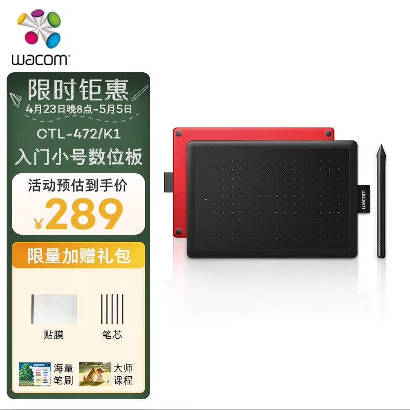Wacom 和冠 数位板 手绘板 手写板 写字板 绘画板 绘图板 电子绘板 电脑画板网课 CTL-472/K1-F价格:289.00元!