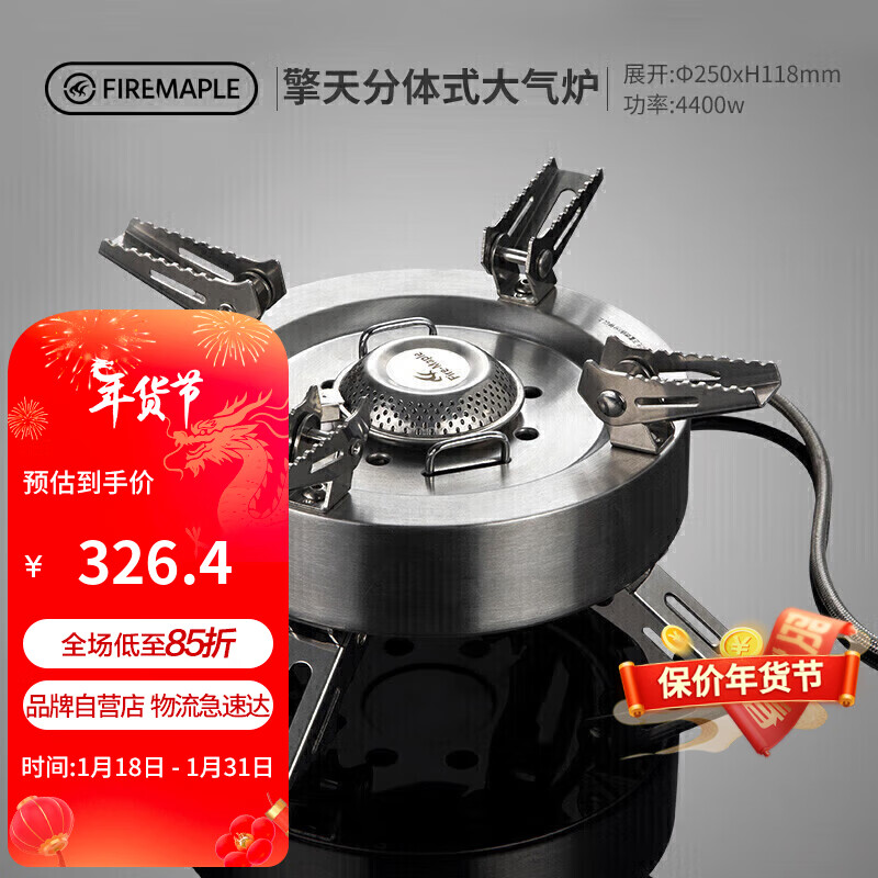 火枫(FIRE-MAPLE)擎天分体式大气炉 户外炉具露营装备折叠燃气围炉煮茶 便携猛火灶价格:384.00元!