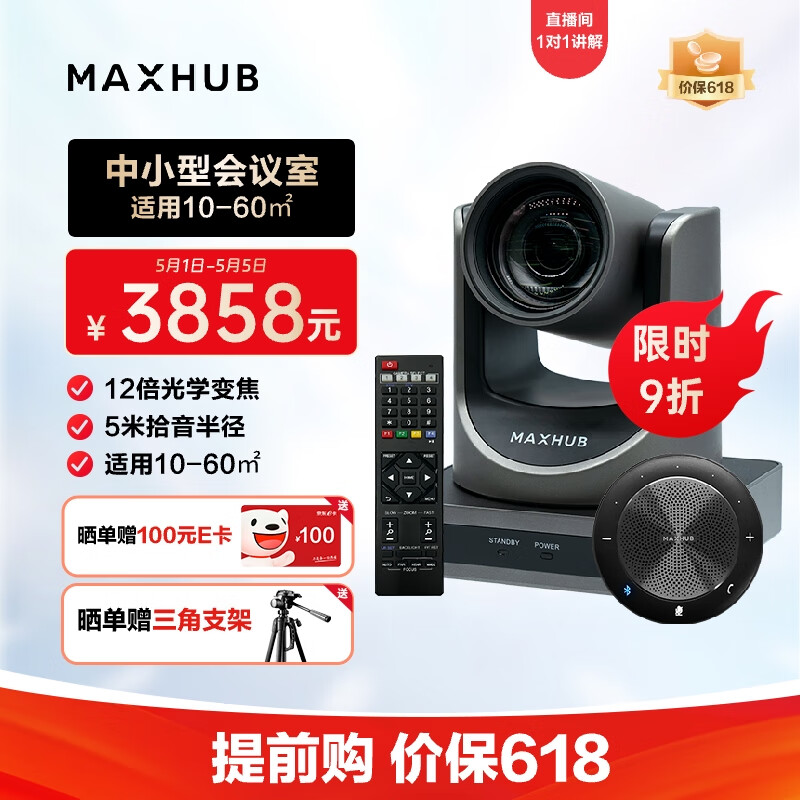 MAXHUB视频会议套装会议麦克风5米拾音半径BM20搭1080P高清光学变焦摄像头SC61A价格:3858.00元!