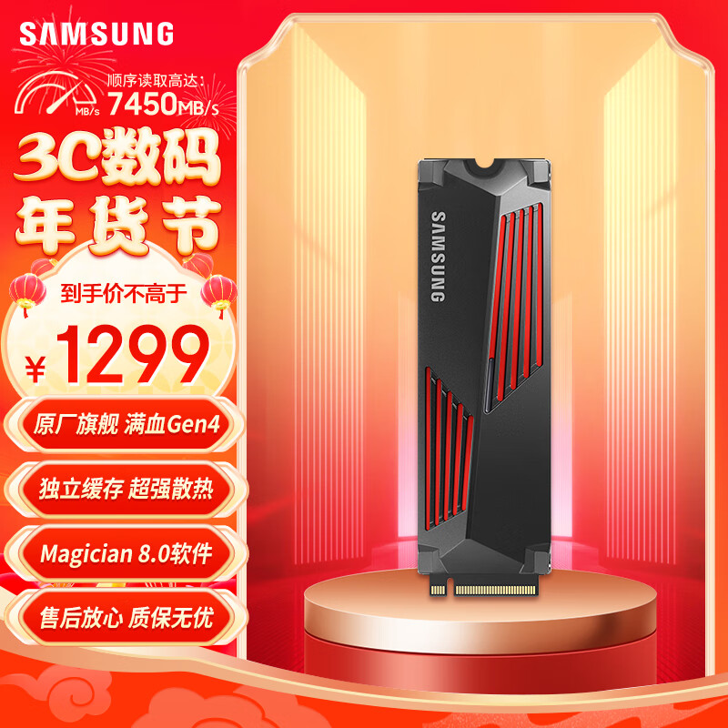 三星(SAMSUNG)2TB SSD固态硬盘 M.2接口(NVMe协议PCIe 4.0 x4) 990 PRO With Heatsink散热片版 台式机 PS5价格:1299.00元!