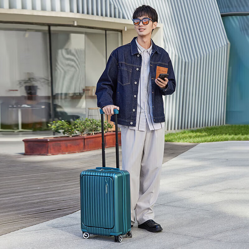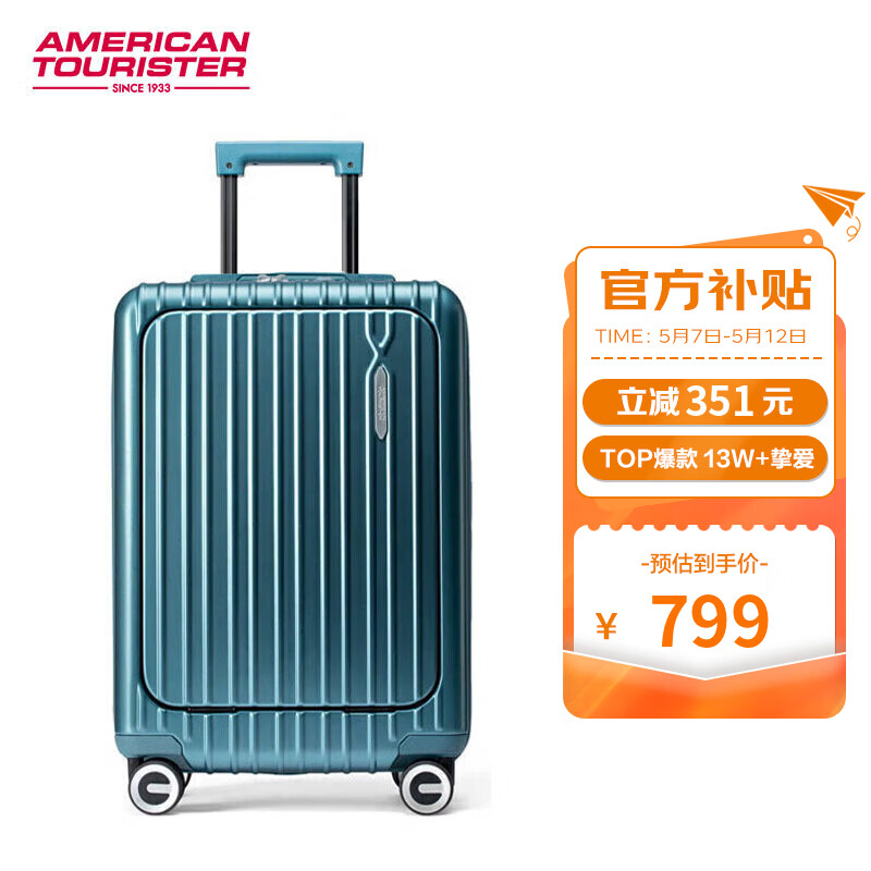 美旅箱包前开口可登机行李箱20英寸轻便拉杆箱飞机轮旅行密码箱79B松石绿价格:799.00元!