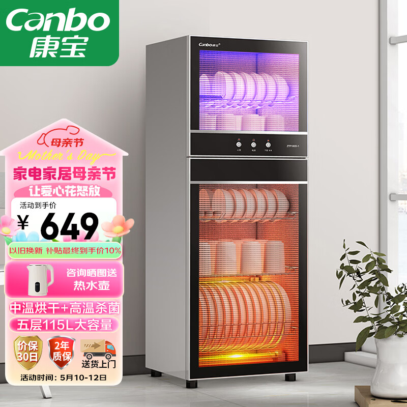 康宝(Canbo)消毒柜家用立式 大容量高温碗筷收纳柜餐具茶杯小型母婴儿奶瓶消毒碗柜 双门厨房碗碟柜 XDZ100-D1价格:649.00元!