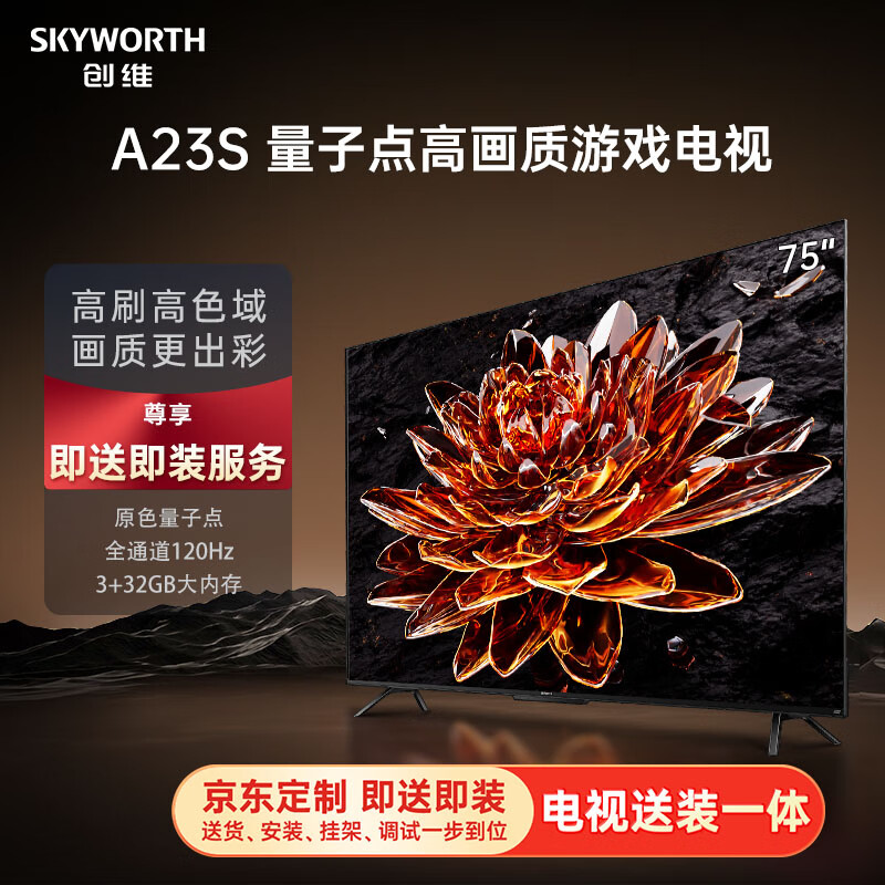 创维电视75A23S【送装一体版本】75英寸电视机量子点120Hz高刷3+32G蓝牙5.0双频WIFI 屏游戏电视价格:3698.00元!