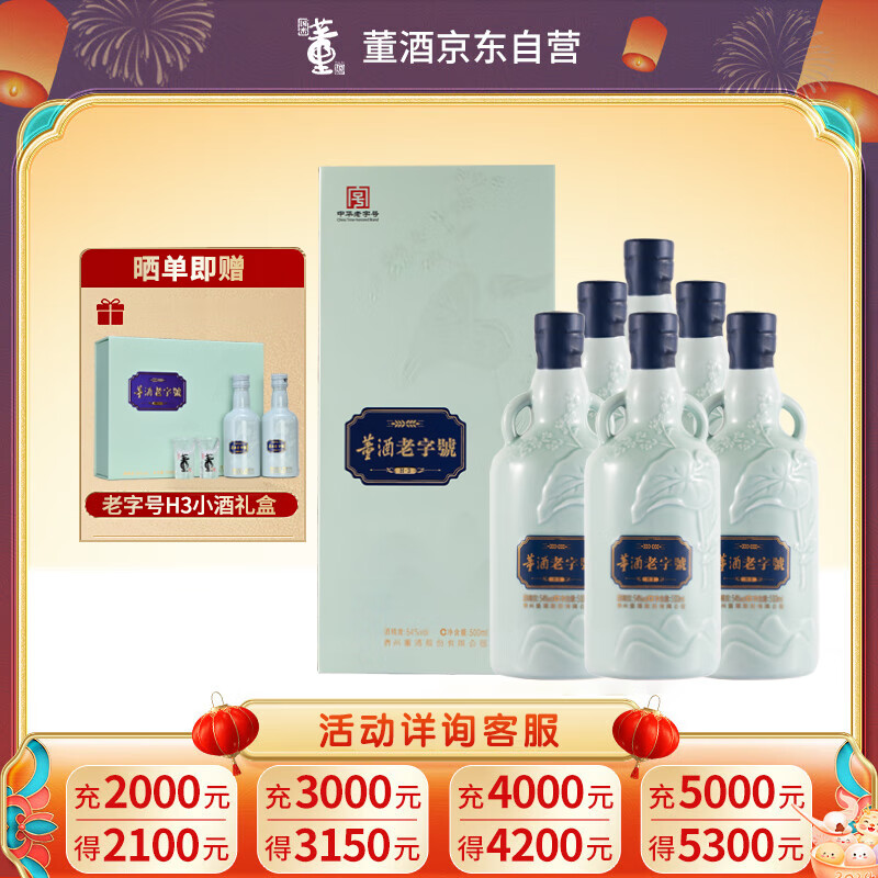 董酒 老字号H3 董香型 白酒 54度 500ml*6瓶 整箱装价格:1949.00元!