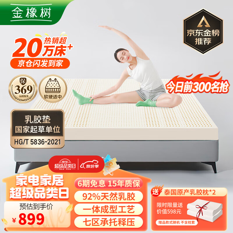 金橡树泰国乳胶原液进口床垫榻榻米单人床垫 1.2米 泰舒 含内外套价格:899.00元!