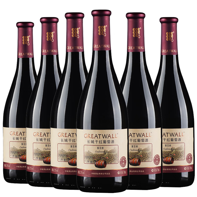商品名称:长城长城(GreatWall)红酒御秘橡木桶陈酿解百纳葡萄酒750ML*6瓶整箱装
