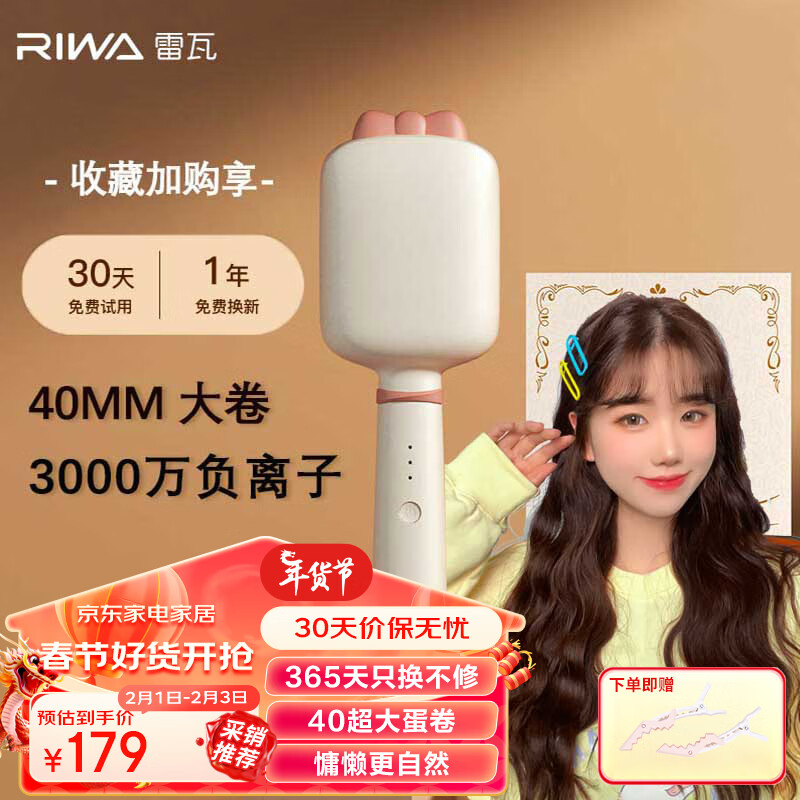 雷瓦(RIWA)蛋卷棒 负离子卷发棒 水波纹法式蛋蛋卷 蛋卷卷发棒 40mm蝴蝶结夹发板 蓬松夹板 新年礼物8365价格:189.00元!