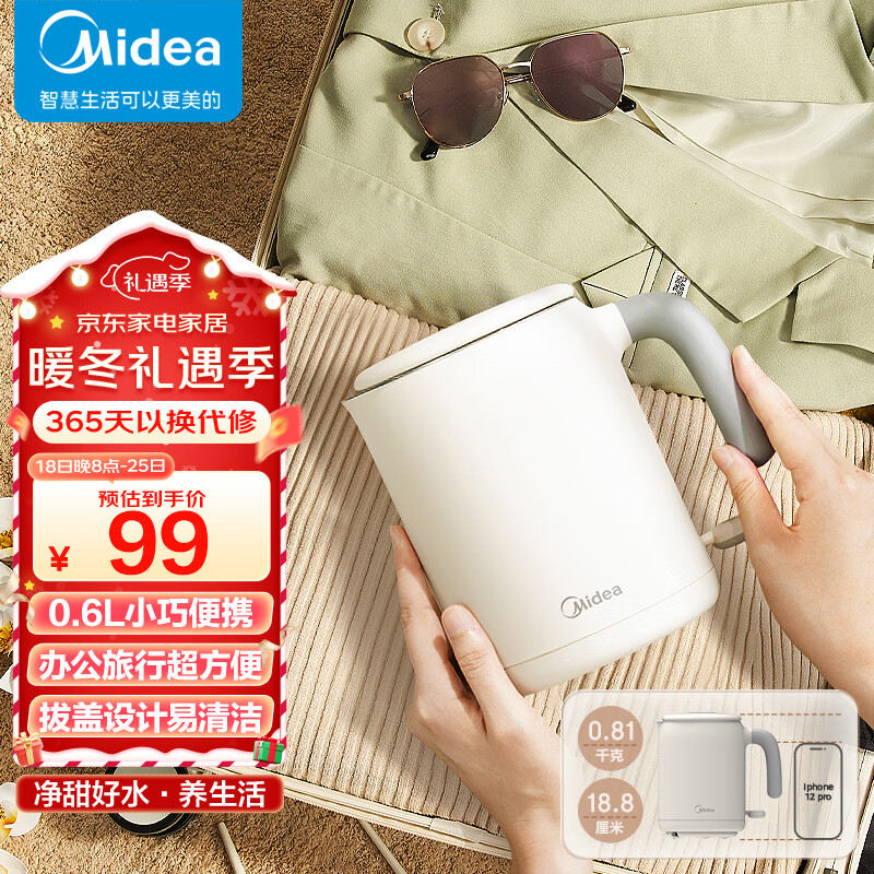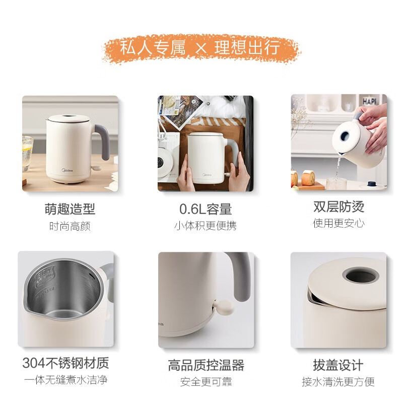 美的(Midea)电热水壶0.6L迷你烧水壶净甜办公旅行便携小型容量拔盖设计开水壶烧水电热杯MK-SH06X6-102价格:99.00元!