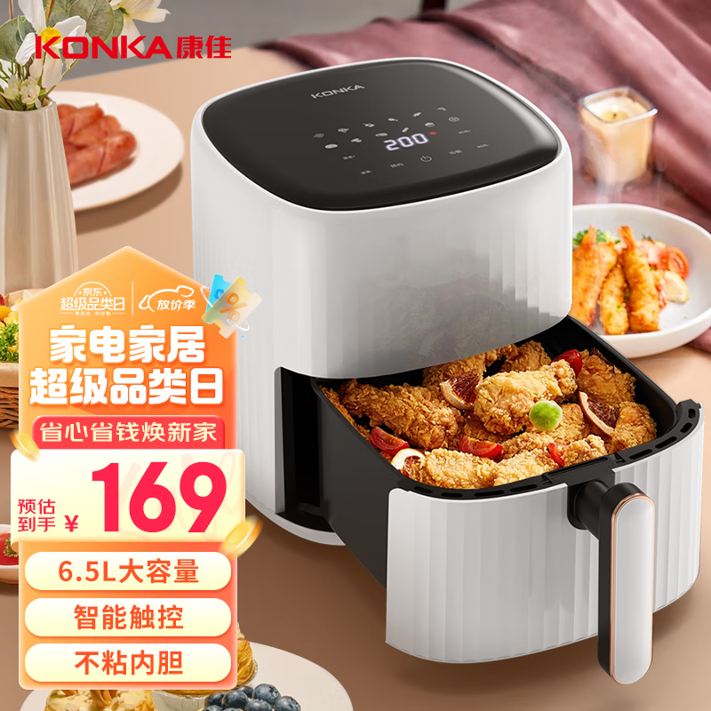 康佳(KONKA)智能空气炸锅 烤肉锅家用多功能低脂无油煎炸空烤电炸锅 不粘易清洁6.5L大容量 KKZG-6017E-W(B)价格:169.00元!