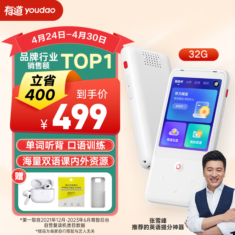 有道英语听力宝 复读机英语听力学习机随身听单词记背磨耳朵神器 听力训练小学初中高中学生听力机32G价格:499.00元!