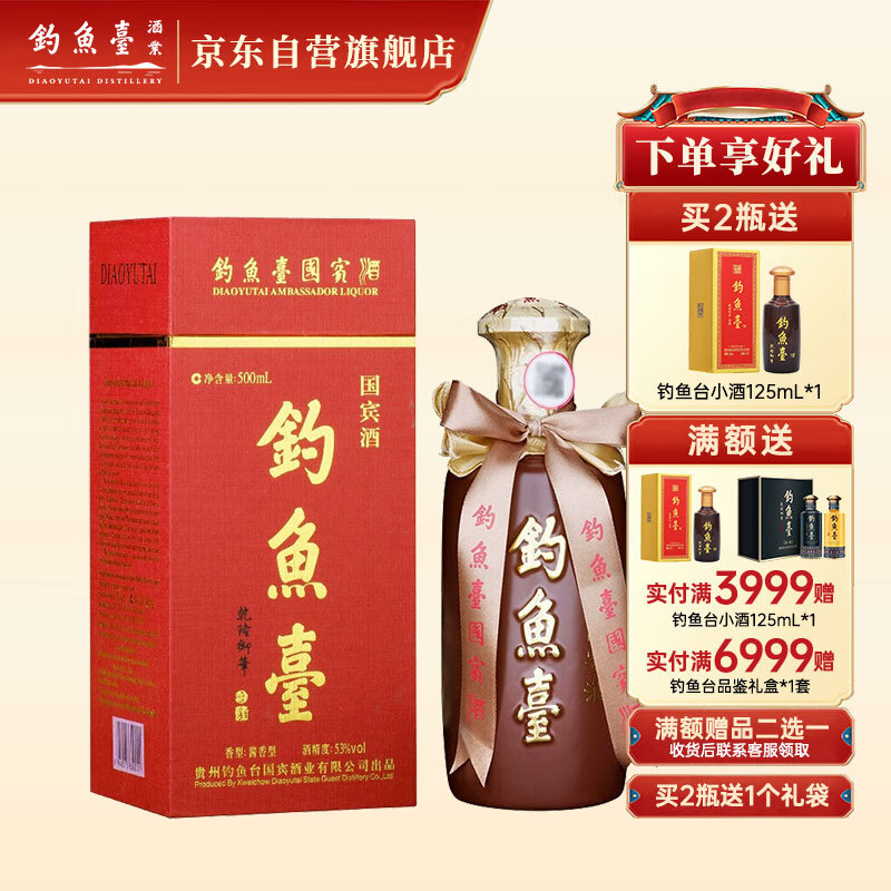 钓鱼台 国宾酒(代) 酱香型白酒 53度 500ml 单瓶装价格:598.00元!