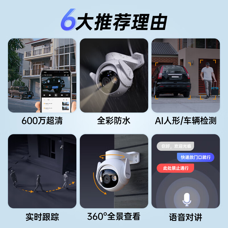 乐橙 监控摄像头室外 TS6-600万高清 商用家用户外室外无线监控器360度无死角带夜视全彩防水价格:299.00元!