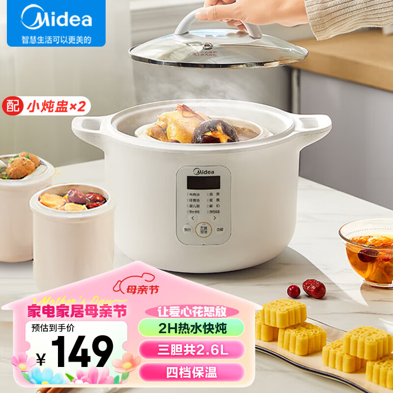 美的(Midea)电炖锅 电炖盅 隔水炖锅 煲汤锅 燕窝炖盅 炖汤锅炖汤盅 婴儿熬粥专用锅 DZ16E102 1.6L价格:159.00元!