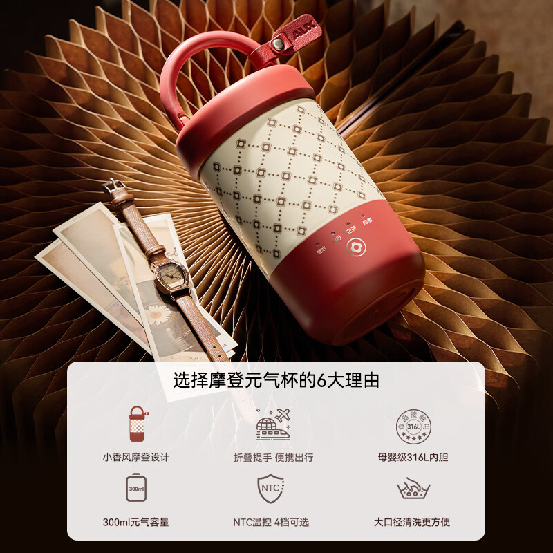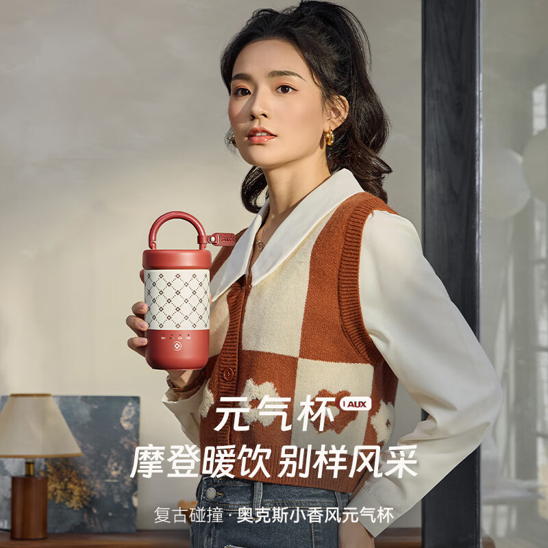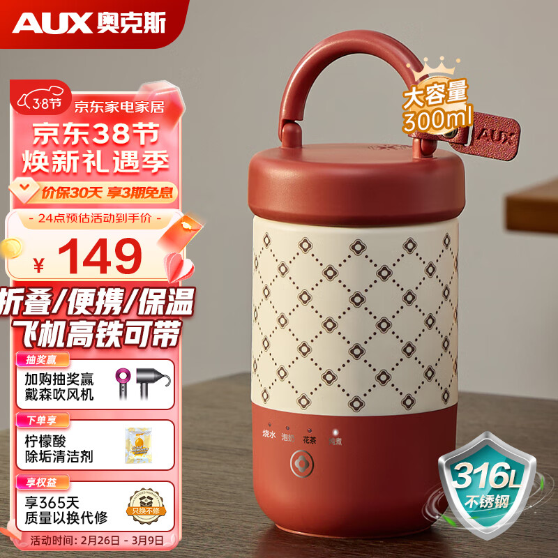 奥克斯(AUX)便携式烧水壶 电水壶电热水壶 旅行电热水杯保温烧水杯办公室养生泡茶烧水 ASH-03AY01 复古红 0.3L价格:199.00元!