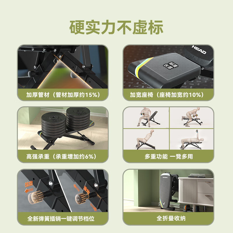 HEAD海德哑铃凳卧推凳仰卧起坐腹肌板健身椅飞鸟凳健身器材家用轻商用价格:449.00元!