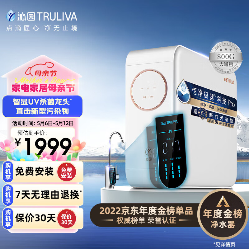 沁园(TRULIVA)小白鲸pro升级版800G智能家用净水器4年RO反渗透厨下直饮2.5L/分钟 UR-S5876i价格:1999.00元!