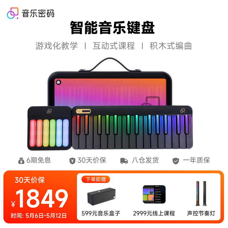 音乐密码键盘智能钢琴彩虹琴便携电子钢琴新手入门儿童成人MIDI键盘价格:2299.00元!