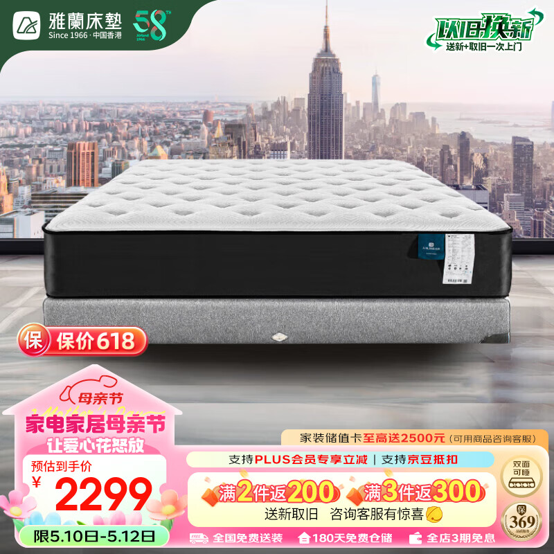 雅兰50周年纪念款软硬适中独袋弹簧乳胶床垫 蘭朋友舒适2.0 1.5*1.9米价格:2699.00元!